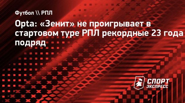 «Зенит» не проигрывает в стартовом туре РПЛ 23 года подряд, сообщает Opta.