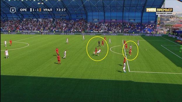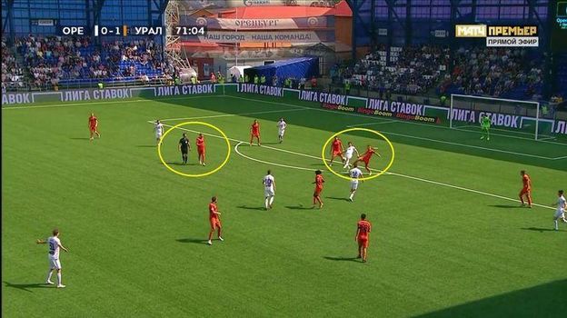 Голевая атака "Оренбурга" состояла из двух фаз. В первой из них в положении "вне игры" находился Джордже Деспотович. Должен ли был первый ассистент Антон Кобзев зафиксировать офсайд, сказать сложно. На повторе непонятно, от кого полетел мяч в направлении Деспотовича – от своего игрока или от Петрюса Бумаля.
