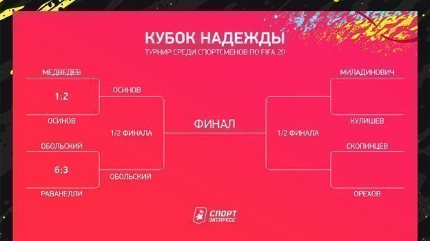 Осинов обыграл Медведева и вышел в 1/2 финала «Кубка Надежды» по киберфутболу