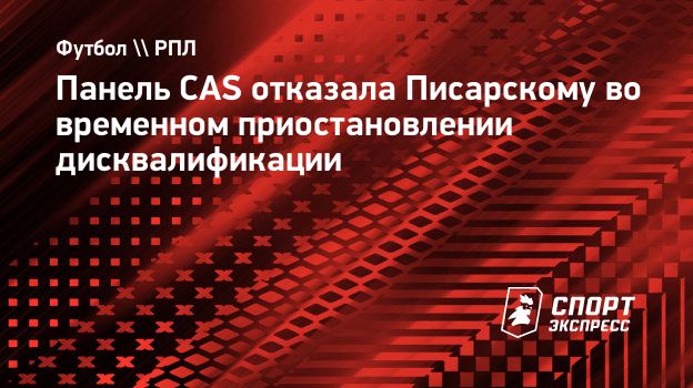 Панель Спортивного арбитражного суда (CAS) отказала бывшему нападающему «Крыльев Советов» и «Сочи» Владимиру Писарскому в удовлетворении его заявления о приостановлении дисквалификации, сообщает правовая компания «Алетейя», которая защищает интересы спортсмена.