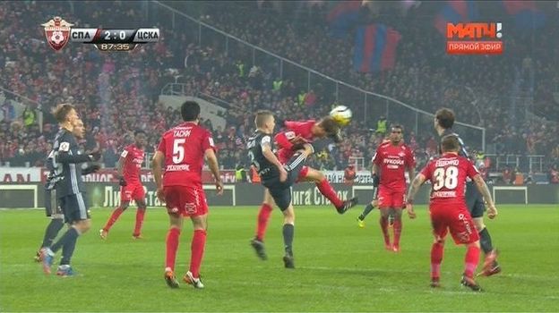 Арбитр Алексей Николаев не вынес, как следовало, предупреждение шведу. Между тем оно стало бы для игрока ЦСКА вторым, и ему пришлось бы покинуть поле.