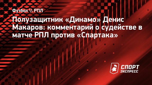 Полузащитник «Динамо» Денис Макаров ответил на вопрос «СЭ» о судействе в матче 18-го тура РПЛ против «Спартака» (1:1).