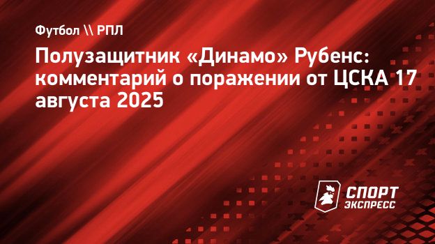 Полузащитник «Динамо» Рубенс подвел итоги матча против ЦСКА (1:3) в 5-м туре РПЛ.