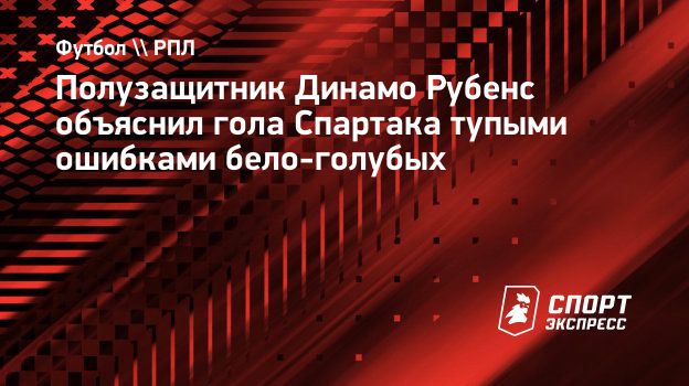 Полузащитник «Динамо» Рубенс — о голах «Спартака»: «Тупые ошибки, которые мы допустили»