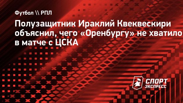 Полузащитник «Оренбурга» Ираклий Квеквескири прокомментировал поражение от ЦСКА в матче 17-го тура чемпионата России.