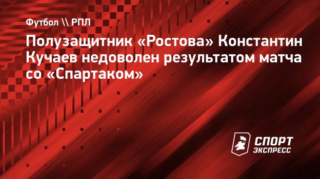 Полузащитник «Ростова» Константин Кучаев недоволен результатом матча со «Спартаком» (1:1) в 12-м туре РПЛ. С 26-й минуты ростовчане играли в большинстве.