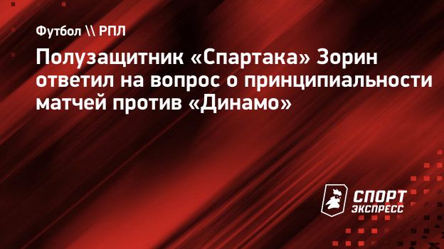 Полузащитник «Спартака» Даниил Зорин ответил на вопрос «СЭ» о принципиальности матчей против «Динамо».