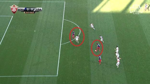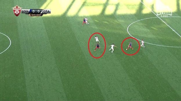 На 28-й и 32-й минутах уже Богданов принял два верных решения, определив офсайды у игроков ЦСКА. В обоих случаях футболисты красно-синих чуть поздно давали передачи партнерам, которые к тому времени уже оказывались в положении "вне игры". (Александр БОБРОВ)