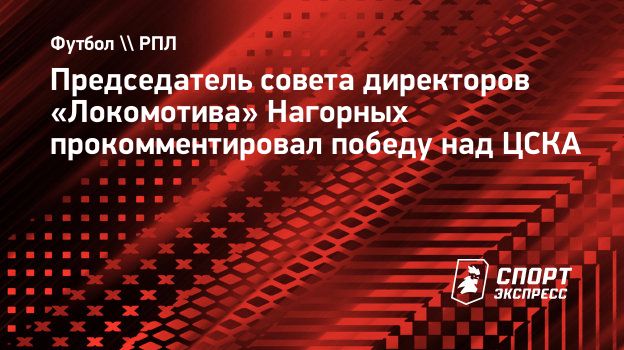 Председатель совета директоров «Локомотива» Юрий Нагорных в комментарии для «СЭ» отреагировал на победу железнодорожников над ЦСКА (3:0) в матче 12-го тура РПЛ.