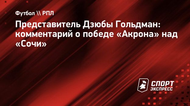 Представитель нападающего «Акрона» Артема Дзюбы Леонид Гольдман прокомментировал победу тольяттинской команды над «Сочи» (3:2) в матче 16-го тура РПЛ.