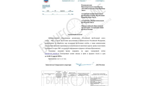 РФС начал сбор данных с профессиональных лиг о финансировании клубов, чтобы обратиться в правительство России с просьбой помочь футболу в связи с кризисом из-за пандемии коронавируса, сообщает «БИЗНЕС Online».