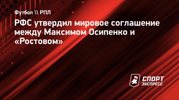 — Удовлетворить ходатайство футболиста Максима Осипенко об утверждении мирового соглашения по делу (по заявлению футболиста в отношении ФК «Ростов» о взыскании задолженности по трудовому договору). Утвердить мировое соглашение от 28 ноября 2025 года, заключенное между футболистом Максимом Осипенко и ФК «Ростов» по делу, — говорится в сообщении.