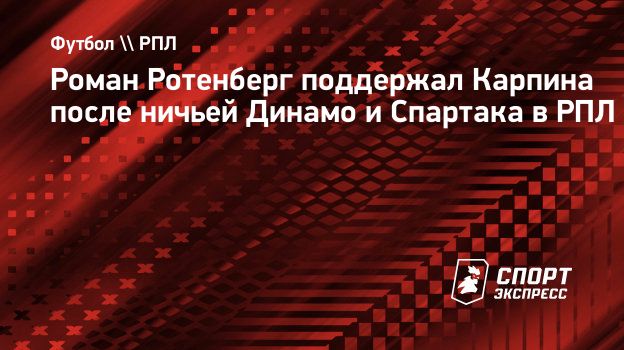 Член совета директоров хоккейного клуба «Динамо» Роман Ротенберг поддержал главного тренера футбольного «Динамо» Валерия Карпина после ничьей со «Спартаком» (2:2) в 8-м туре РПЛ.