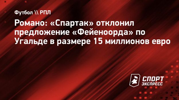 Романо: «Спартак» отклонил предложение «Фейеноорда» по Угальде в размере 15 миллионов евро