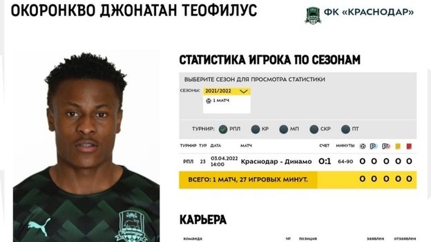 Если верить сайту Российской премьер-лиги, два футболиста «Краснодара», нападающие Джуниор Олакунле Олусегун и Теофилус Джонатан Окоронкво, в нарушение установленных правил вышли на поле в матче 23-го тура Тинькофф чемпионата России с «Динамо» (0:1). Получается, что теперь «быкам» нужно присудить поражение 0:3?