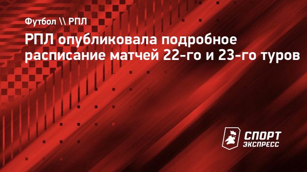 Российская премьер-лига опубликовала подробное расписание для двух туров: 22-го и 23-го, которые состоятся после мартовского перерыва на матчи сборных.
