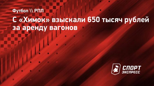 Арбитражный суд Москвы взыскал с «Химок» свыше 650 тысяч рублей по иску «Федеральной пассажирской компании» за аренду железнодорожных вагонов, сообщает ТАСС.