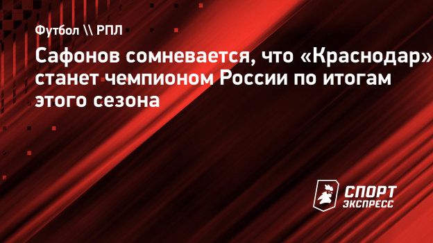 Сафонов сомневается, что «Краснодар» станет чемпионом России по итогам этого сезона