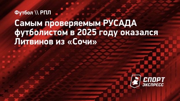 Самым проверяемым РУСАДА футболистом в 2025 году оказался Литвинов из «Сочи»