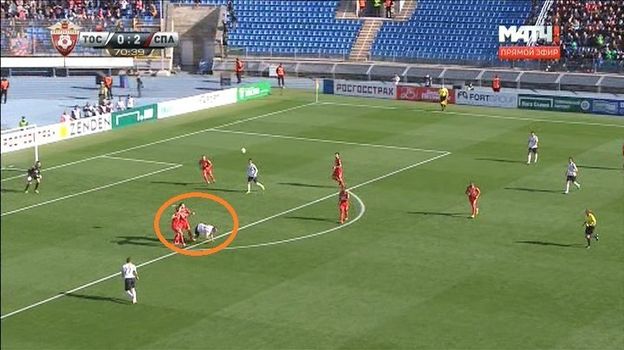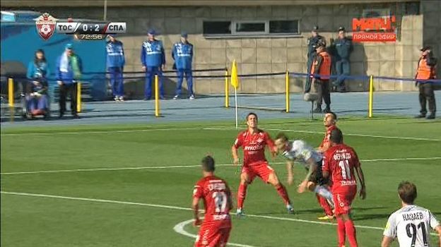 На 71-й минуте матча 10-го тура чемпионата России "Тосно" – "Спартак" арбитр Владимир Сельдяков во второй раз не назначил пенальти в ворота красно-белых. Спартаковский защитник Марко Петкович нарушил правила в своей штрафной, толкнув в спину Антона Заболотного. Однако судья снова, как и на 57-й минуте, не стал наказывать гостей 11-метровым. (Александр БОБРОВ)