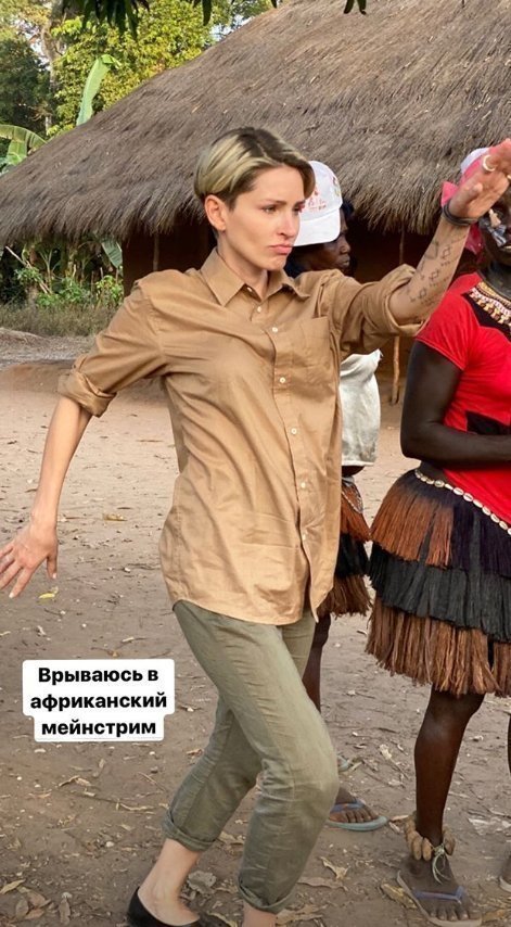 На одной из фотографий супруги держат на руках темнокожего ребенка, а на другой Анна поясняет, почему несколько дней не выходила на связь — из-за того, что не во все уголки мира проникла цивилизация. На других кадрах Семаки посещают местную деревню и приют.