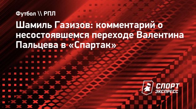 Генеральный директор «Динамо» Махачкала Шамиль Газизов в разговоре с «СЭ» высказался о несостоявшемся переходе защитника Валентина Пальцева в «Спартак».