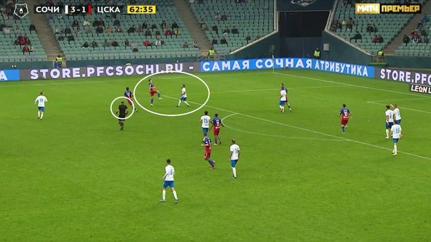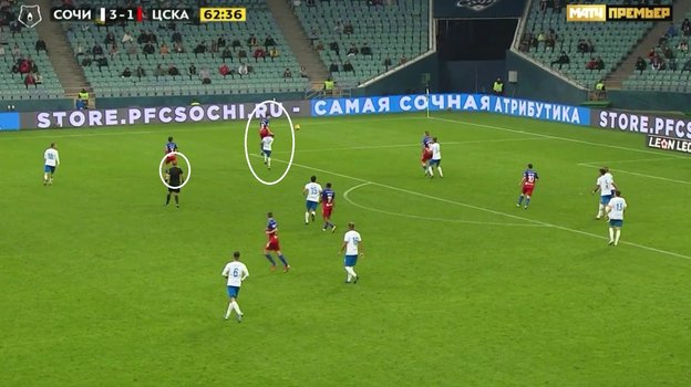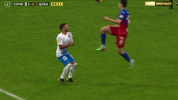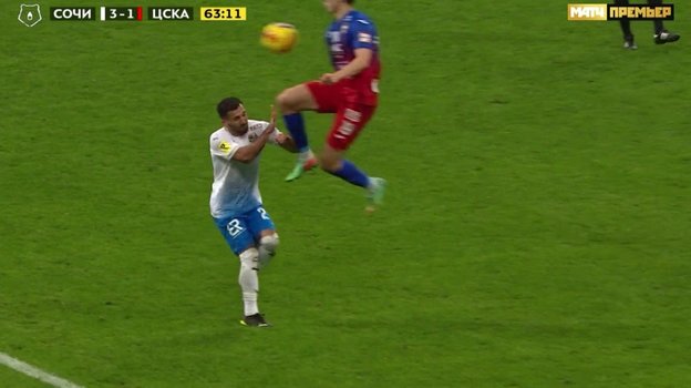 «Сочи» — ЦСКА: арбитр ошибочно не удалил игрока гостей за удар соперника ногой