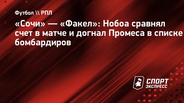 «Сочи» — «Факел»: Нобоа сравнял счет в матче и догнал Промеса в списке бомбардиров
