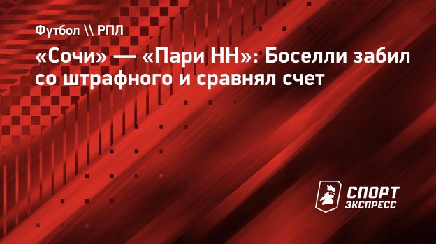«Сочи» — «Пари НН»: Боселли забил со штрафного и сравнял счет