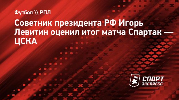 Советник президента РФ Игорь Левитин прокомментировал итог матча 16-го тура РПЛ между «Спартаком» и ЦСКА (1:0).