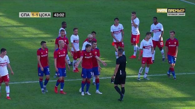 На 44-й минуте матча Кубка Париматч Премьер "Спартак" – ЦСКА ошибся арбитр Александер Харкам, не удаливший нападающего красно-белых Луиза Адриану.