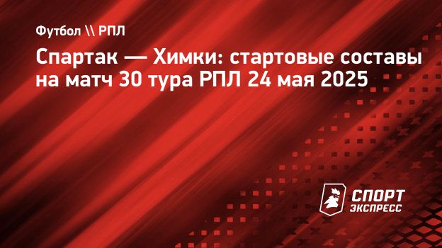 Стали известны стартовые составы на матч между «Спартаком» и «Химками» в 30-м туре РПЛ.
