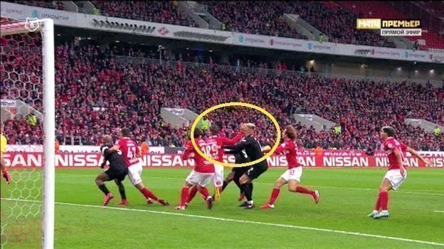 В том моменте после выполнения углового удара, когда мяч был в игре, в штрафной площади «Спартака» его защитник Илья Кутепов ударил Егора Сорокина рукой в лицо и помешал ему совершить удар по воротам. Рефери следовало наказать Кутепова 11-метровым и желтой карточкой. (Александр Бобров)