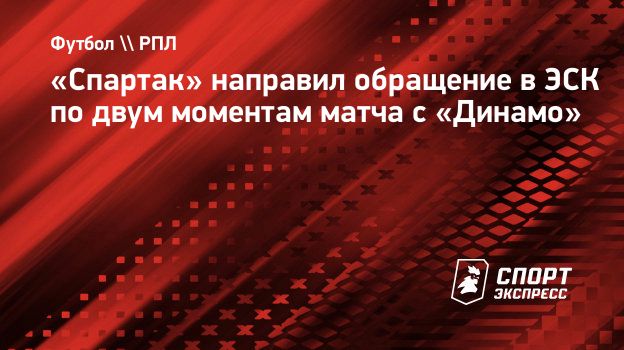 «Спартак» направил обращение в ЭСК по поводу двух моментов матча 28-го тура РПЛ с «Динамо» (0:2).