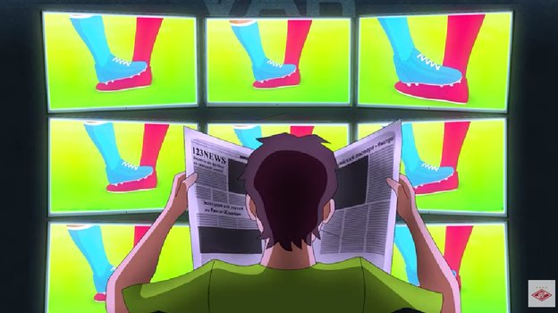 Матч «Спартака» с «Зенитом» анонсирован тем, что арбитр из комнаты ВАР читает газету на фоне нарушения. В заголовках газеты также есть отсылки: например, к получению Малкомом и Клаудиньо российского гражданства и раздаче болельщикам бесплатных билетов.