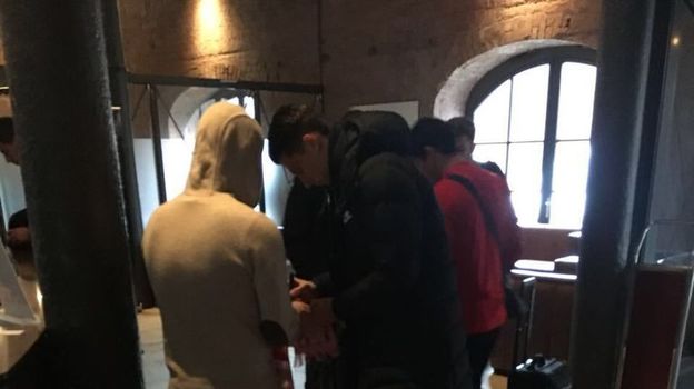 "Спартак" выехал в аэропорт Ливерпуля. В 18.00 по московскому времени команда вылетит в Москву. В отеле "Титаник" с красно-белыми фотографировались болельщики. Все они желали спартаковцам удачи: "Главное – дерби!" (Дмитрий СИМОНОВ)