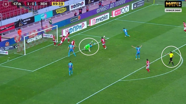 На 89-й минуте матча 29-го тура Тинькофф чемпионата России «Спартак» — «Зенит» (1:1) арбитр Павел Кукуян совершил две ошибки в ходе одной атаки гостей. Он неверно зафиксировал фол со стороны спартаковского вратаря Александра Селихова.