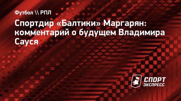 Спортивный директор «Балтики» Армен Маргарян в разговоре с «СЭ» ответил на вопрос о будущем нападающего Владимира Сауся.
