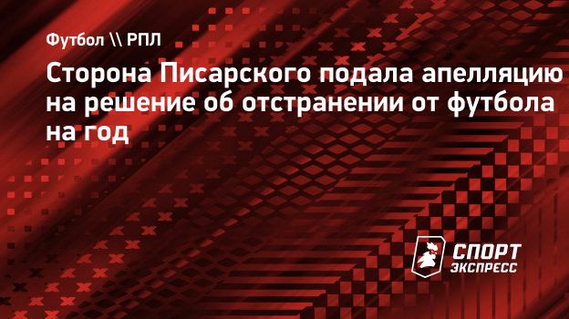 Сторона Писарского подала апелляцию на решение об отстранении от футбола на год