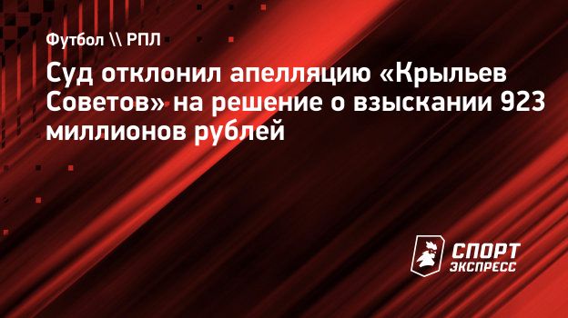 Суд отклонил апелляцию «Крыльев Советов» на решение о взыскании 923 миллионов рублей