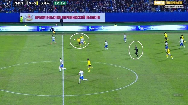 На 11-й минуте судья не наказал желтой карточкой воронежского защитника Кирилла Суслова — тот сорвал перспективную атаку гостей, три футболиста которых выбегали на трех соперников.