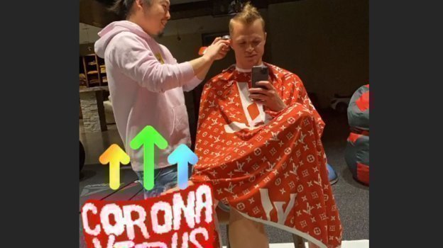 32-летний российский футболист сделал снимок с парикмахером азиатской внешности и подписал его: «коронавирус».