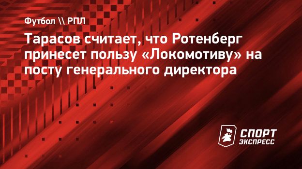 Бывший полузащитник «Локомотива» Дмитрий Тарасов поделился с «СЭ» мнением о назначении Бориса Ротенберга на пост генерального директора клуба.
