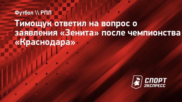 Тренер «Зенита» Анатолий Тимощук ответил «СЭ» на вопрос о заявлении руководства сине-бело-голубых по случаю чемпионства «Краснодара».