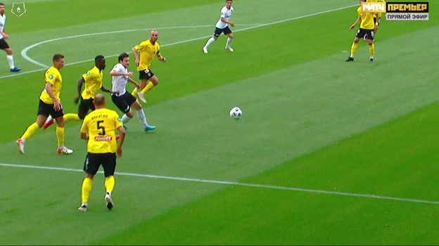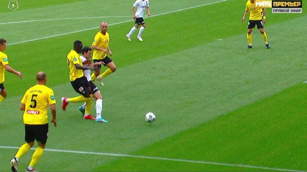 Точно таким же образом заработал 11-метровый Караев, который, не пытаясь сыграть в мяч, поставил правую ногу «под» Гбане. На самом деле можно квалифицировать то, что сделал торпедовец, как подножку.