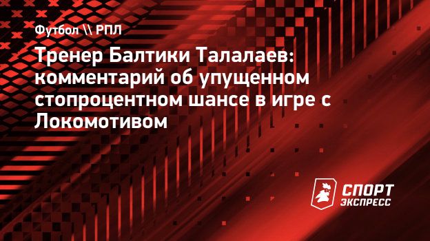 Главный тренер «Балтики» Андрей Талалаев, чья команда в шести стартовых матчах РПЛ не потерпела ни одного поражения и вышла на второе место после саратовского «Сокола» 2001 года по длине беспроигрышной серии со старта сезона для клуба — новичка высшего дивизиона, в интервью «СЭ» высказался об упущенном стопроцентном шансе, который стоил «Балтике» победы над «Локомотивом».