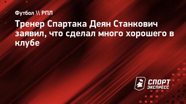 Главный тренер «Спартака» Деян Станкович считает, что внес весомый вклад в развитие красно-белых.