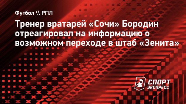Тренер вратарей «Сочи» Дмитрий Бородин в разговоре с «СЭ» отреагировал на слухи о возможном переходе в тренерский штаб «Зенита».