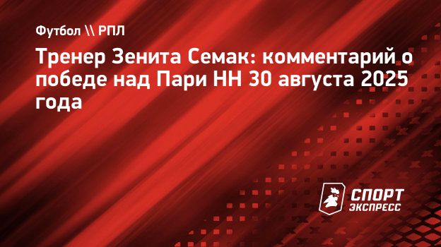 Главный тренер «Зенита» Сергей Семак прокомментировал победу над «Пари НН» (2:0) в 7-м туре РПЛ.