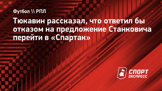Нападающий «Динамо» Константин Тюкавин заявил, что отказался бы от предложения тренера Деяна Станковича перейти в «Спартак».